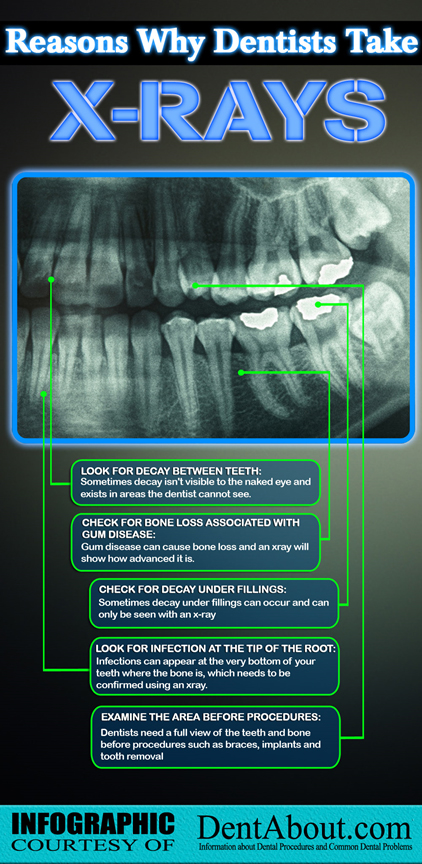 Dental radiographs (x-rays) are essential, preventative, diagnostic tools that provide valuable information not visible during a regular dental exam. WoodGrove Family Dentists dentist use this information to safely and accurately detect hidden dental abnormalities and complete an accurate treatment plan. Without x-rays, problem areas may go undetected. The infographic shows what a Dental x-ray may reveal.